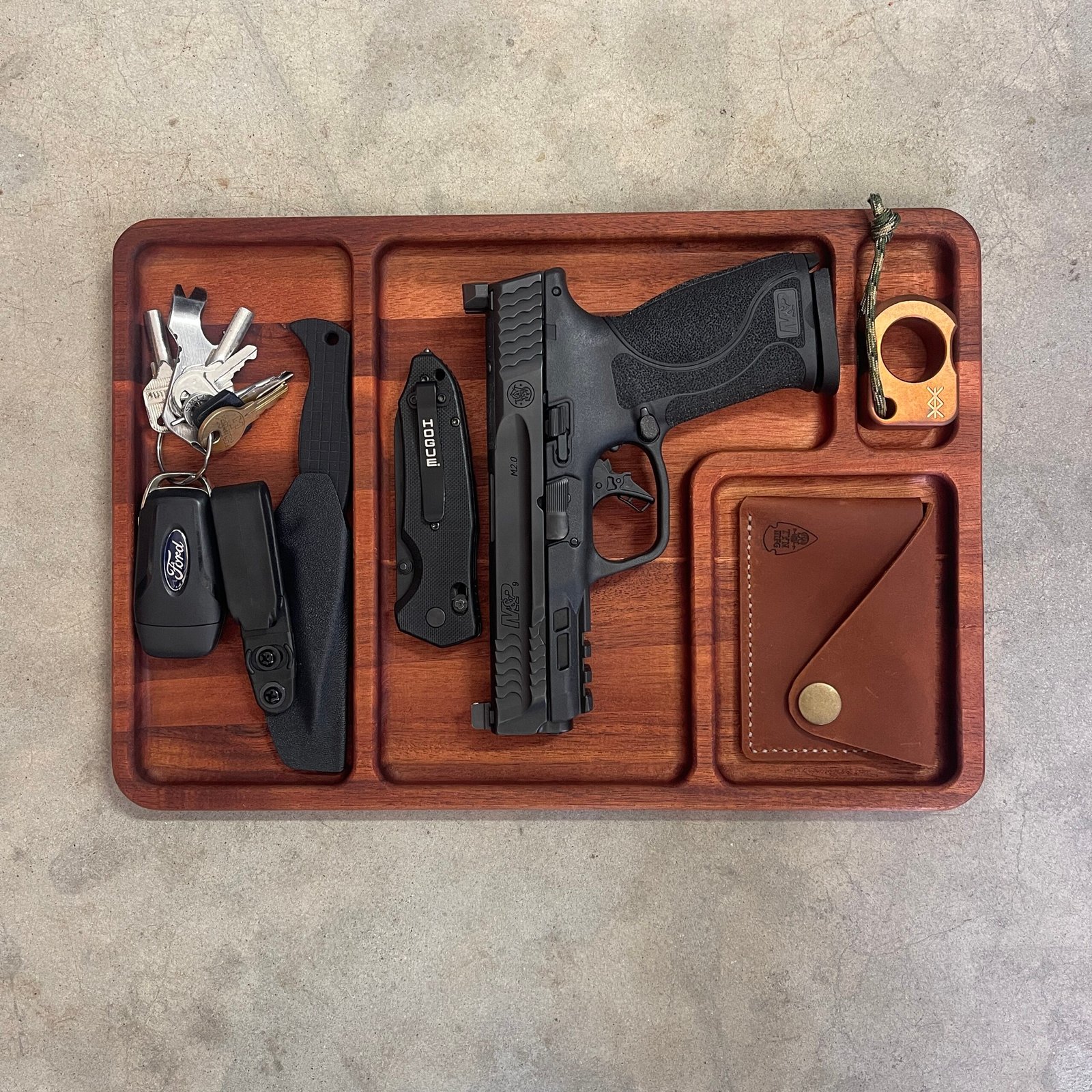 Want to keep all your goodies organized and accessible at the end of the day? No better way than with The Bento Nightstand Tray. Configured to fit all of your EDC goods, including all the swag you’ve picked up from TYN-MFG.