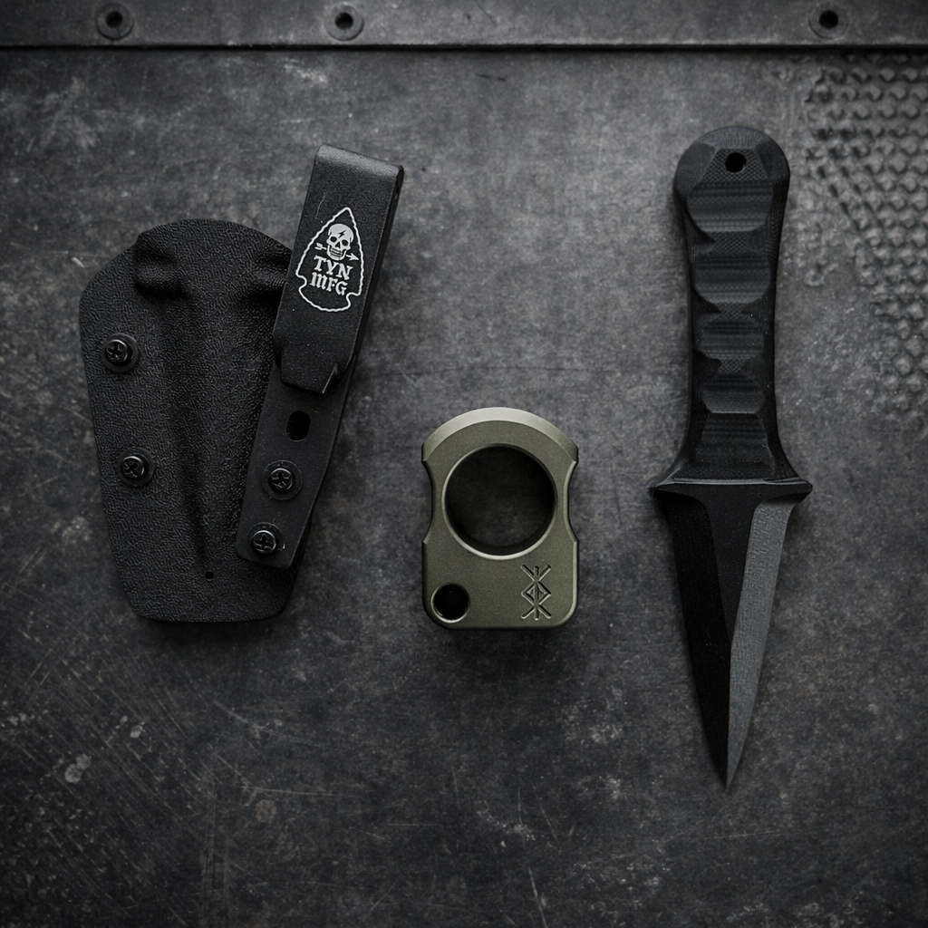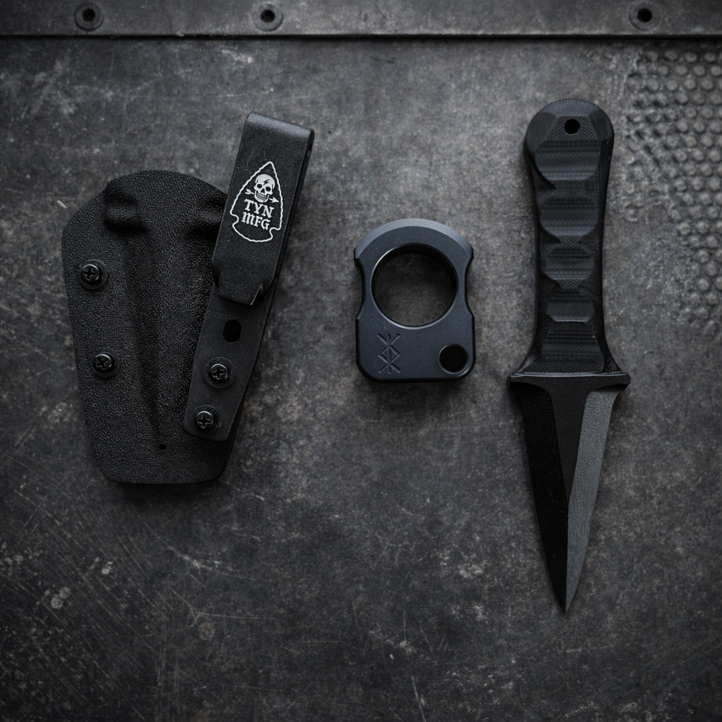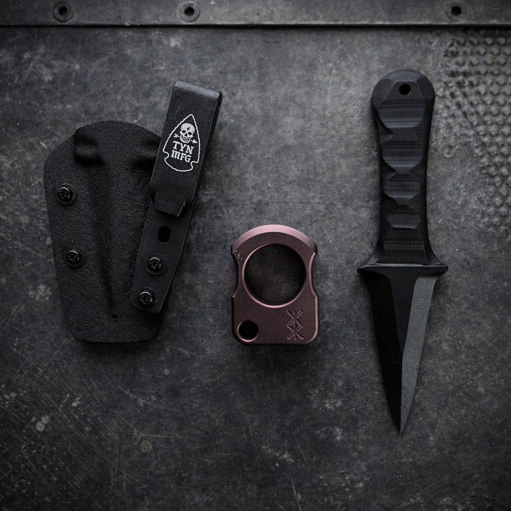 “The Merlin” is now available in FAFO pack. Get the Powerful, stealthy, and magical this non-metallic, non-detectable tool and the aluminum knuck. Perfect additions to your EDC setup. The Merlin is 100% non-metallic…all of it. The sheath, tool, clip, and hardware.